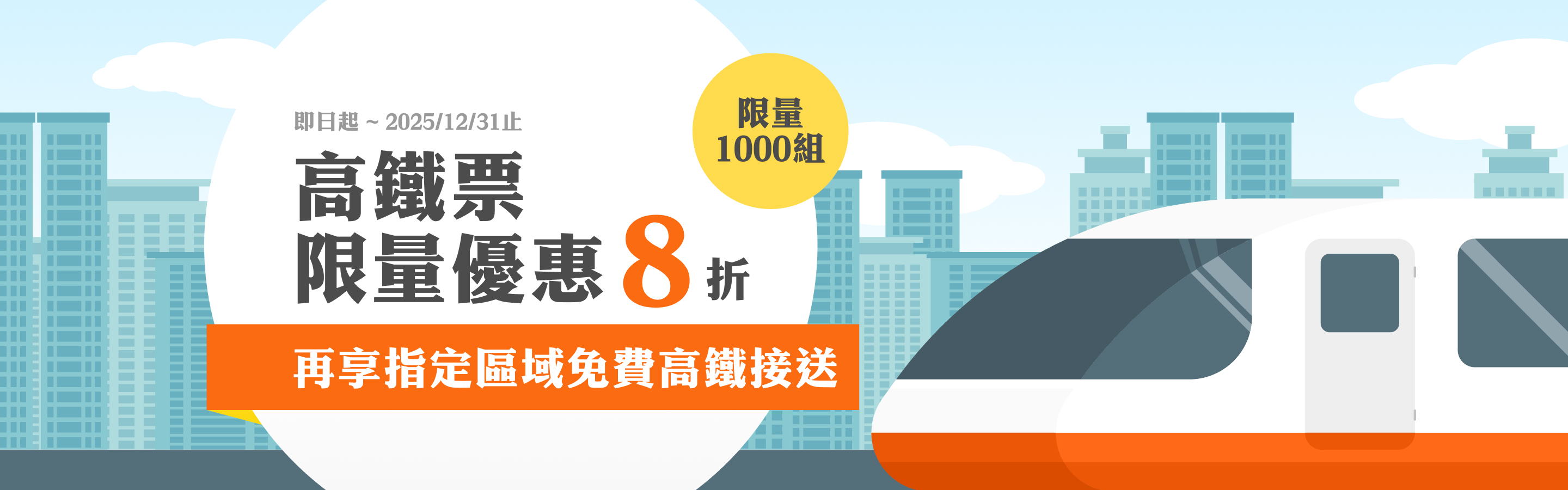 在肯驛旅遊平台 OTA /福委會平台/點數平台,訂購全球機票成功即可加購高鐵票 8 折優惠。