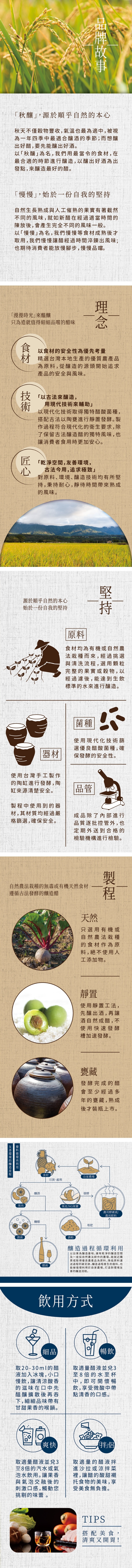 商品特色 .嚴選以自然農法或有機栽種的在地鳳梨為原料,經釀造熟成而得。 .入口後,在酸甜味短暫地衝擊味蕾後,鳳梨果香緩緩流洩而出,充盈於口腔間,適合喜愛鳳梨熱帶風情的你。