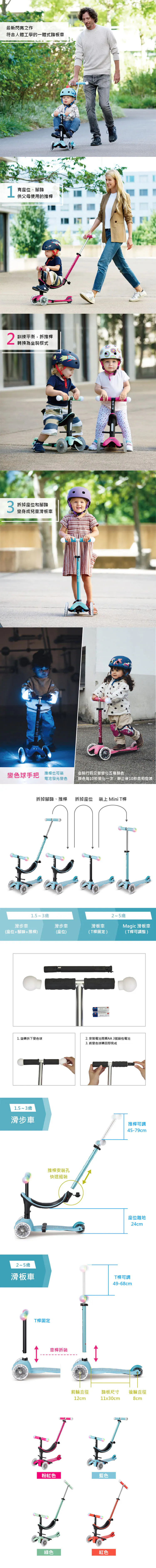 .可變換滑步車(含推桿)+滑板車模式
