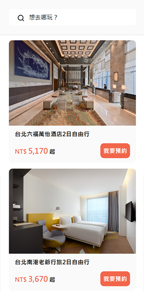 搭高鐵來回車票+精選住宿優惠,就能輕鬆規劃國內自由行。與全台灣超過 300 家精選飯店合作,如知名飯店 晶英酒店、老爺酒店、洲際酒店、君品酒店 等,您想的到的都任您挑選,結合交通與住宿一次搞定,省時又省力!