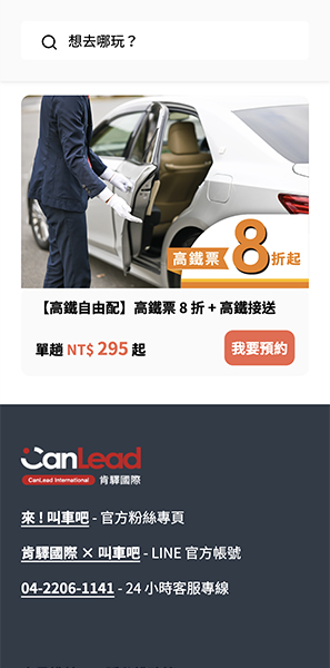 肯驛限量套裝商品,包車出遊無煩惱。高鐵票 8 折優惠+專屬包車服務,全台各高鐵站皆可安排,到站即上車! 讓你旅程無縫接軌更輕鬆,不須擔心旅遊走錯路。