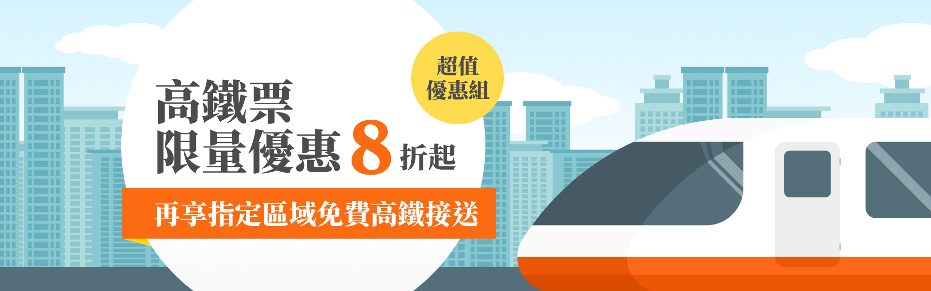 肯驛限量套裝商品,自由選擇高鐵接送。限時限量高鐵票 8 折起優惠 + 高鐵站接送買一送一優惠,讓你出遊省時又便利。(雲林及嘉義地區目前暫無接送服務) (高鐵雙程接送注意事項)